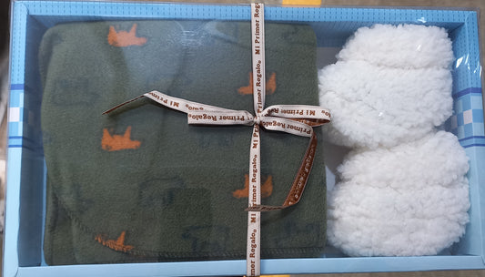 SET DE REGALO; 2 PARES DE ZAPATITOS Y 1 COBERTOR AZUL E-230202