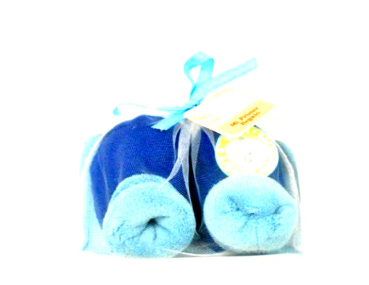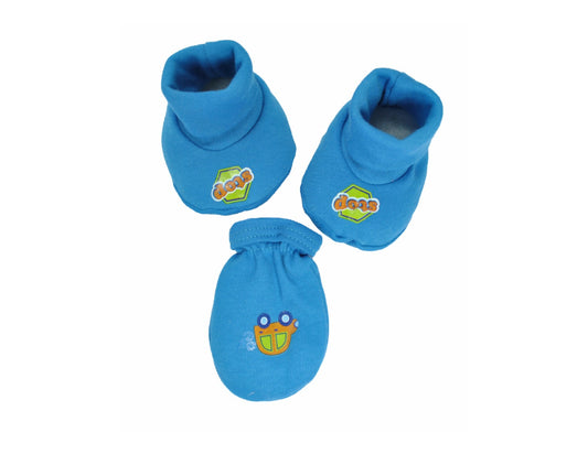 SET DE REGALO; BABERO, GORRO, PAR DE MANOPLAS Y ZAPATOS AZUL E-230203