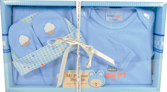Caja con Pañalero Manga Larga, Pantalón con Puño, Gorrito y Manoplas