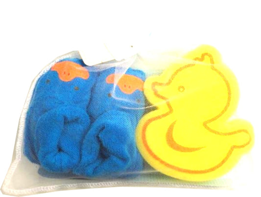 PAR DE ZAPATITOS, TOALLA Y ESPONJA DE PATITO.